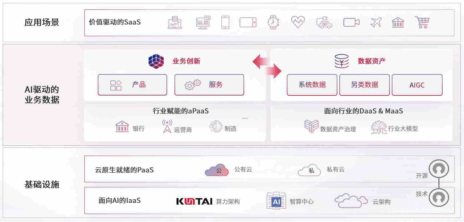 数字时代,,,围绕企业数字化转型的关键要素,,,尊龙z6数码开创性的提出数云融合战略和技术体系框架,,着力在云原生、、、、数字原生、、、AI原生和信创产业上架构产品和服务能力,,,,为处在不同数字化转型阶段的快消零售、、汽车、、金融、、、医疗、、、、政企、、、、教育、、、运营商等行业客户提供泛在的敏捷IT能力和融合的数据驱动能力,,构建跨界融合创新的数字业务场景和新业务模式,,助力企业级客户建立面向未来的核心能力和竞争优势,,,,全面推动社会的数字化、、、智能化转型升级。。。。
